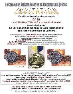 ------- Médailla d’argent. Attribution par Le Club des Arts avec les Juges de L’Académie Royal des Arts du Canada