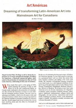Presse Article La Voz «El pintor de la musica clasica» ------- Article Terra Nova, «Le monde de ------- Mapalé Artes y Letras, Ottawa-«Dreaming of transforming Latin-American Arts into Mainstream Arts for Canadians-Photo ------- Article et photo Parcours, ------- Mention Magazin’Art – Montréal No 64, été 2004-page 49 ------- Article et photo Le Journal de Chambly –Chambly-7 octobre 2003 ------- Photo du vernissage exposition «Les Ailes de l’imagination» ------- Article et photo Periodico Etcétera-Montréal-juin 2003 |