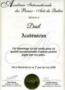 Memberships Membre académicien de l'Académie Internationale des Beaux-Arts du Québec ------- Membre du Le Cercle des Artistes Peintres et Sculpteurs du Québec ------- Membre du Club des Arts/ The Arts Club